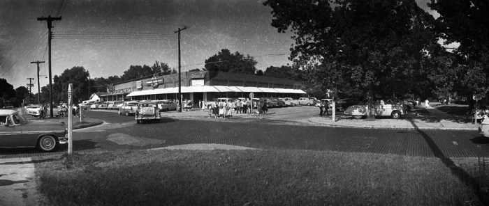 you know… that corner, looking in that direction doesn’t look that much different today. And I kinda like that. True I can’t get a birthday card at Moulton’s or better yet, a Pimento Sandwich at friendly Service But ah well. No I’m not in the picture, I shopped there in the 70’s.