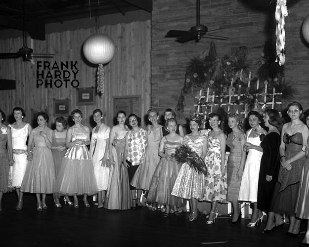 This photo of a group of beauty contestants was taken inside the ballroom of the old Casino on Pensacola Beach in the 1950’s.  I can remember the Casino fairly well, but I have only run across one exterior photo.  I do not know who any of these ladies are or what beauty contest it is … could be one sponsored by the Jaycees.  I have run across several negative envelopes that have  ” Jaycee Beauty Contestants ” written on them, but there are no names of the girls in the negatives.  As usual, all comments are appreciated and thanks for looking …