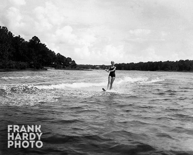 • Wow that would be great Frank; I am sorry about the misinformation about Mrs. Smith. Yes I remember Ginger well, she headed up all of us skiers. She planned the shows. We also did one over on the sound north of the picnic tables towards the bridge. I have an photo album of our different acts but I don’t remember the photographer but I know at this particular show it wasn’t your dad. The photos are beautiful the photographer was riding in the boat for each act and did a wonderful job. They are all in color. They were made on Sept.1st 1979. That was the year that Tim Bonifay had that terrible accident, on June 6, 1979. That really had everyone upset. We dedicated this show to him. He was a big help for Ginger. Up until then the Bonifays were bad not to wear the life jackets or belts but after that no one got in the boat w/o one. I was in “Welcome” flag girls at the beginning of the show. I was the “e”. lol We really had a good time, I would work during the day and head out for practice every evening. We practiced every week-end. Wished I was in the shape I was in then lol !