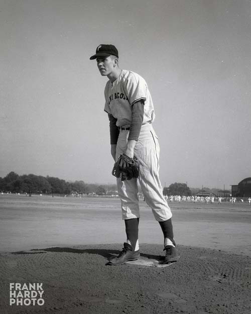 1st baseman is Osmond Howe (’60). Pitcher is Tom Markham (’60). Coach is not Jimmy Haynes. I’m pretty sure that it’s Charlie Stokes (possibly “Shorty” Ward ).