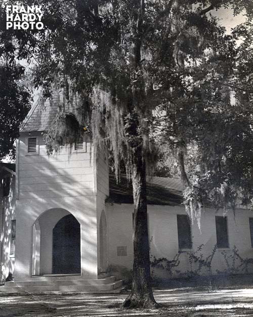 Feel free to do whatever you would like with anything that I post on this site. I appreciate you being considerate and asking. I do not know whether my father actually made this photo. This negative was in a box that contained ” copy negatives “. I just thought that it was a nice image of a church with the Spanish moss hanging from the trees … it just looked like Old Florida to me. Let me know what he says and please check back Glenda … Frank