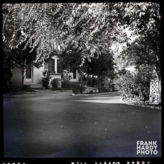I have found some more negatives recently from one of my father’s trips out to California in the 1940’s and 50’s to visit his sister, Lucille. I have no idea about the history behind these two images, other than the fact that they were made somewhere in California … could be Los Angeles, maybe Modesto … who knows. But it looks like the type of place that you would find Humphrey Bogart walking out of after received a call in the middle of the night from an unknown stranger that said he would find a blond hair starlet lying dead across the bed if he went to this bungalow off of Sunset Boulevard. I guess that I have read too many detective novels or have seen too many black and white films form the 1950’s. Here is one more view …