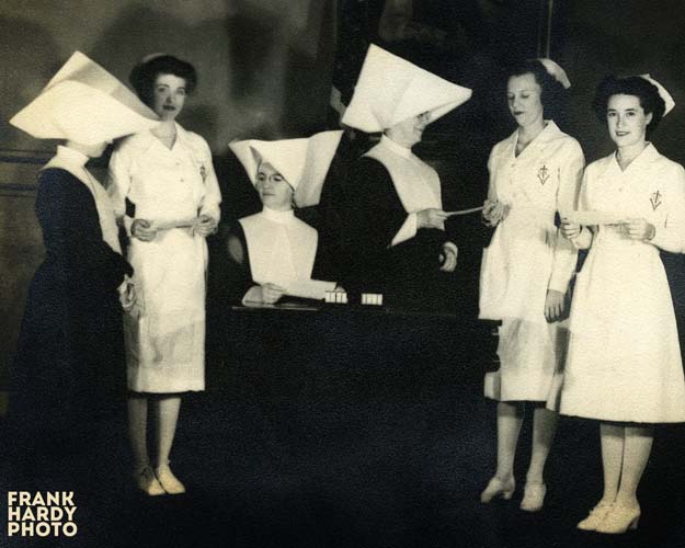 The nurse on the left side of the image is one that keeps showing up in some of the images, but I do not know who she is. She just has a very familiar face for some reason or another, this was at least ten years before I was born so she would not have been someone that I would have known. This is all of these that I am going to post now, I will save more for later posts. If any of you nurses from the 1940’s recognize any of these girls, please let us hear from you. Thanks again for looking and please check back … Frank