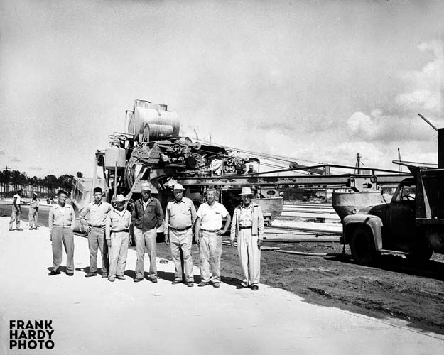 • Thanks for the comment Dixie … I can see how he thought that it was the construction of I-10, especially with the pine trees on the side in the background. The negative envelope had the name of the construction company ( which I did not bother to mention ) and also that it was airport runway construction. The year might have been on it, but I do not feel like hunting down the negative envelope and looking. Sometime in the next few years I am going to make a project of cataloging all of negatives and putting them in some order that anyone can locate a negative easily. The interstate construction with concrete was not solid stretches of concrete like the runway, but were “slabs” of concrete butted up next to one another. Just like the I-10 bridge over Escambia Bay were sections placed on the pilings. When the tidal wave came up into Escambia Bay, it lifted the sections off of their pilings, not breaking out or off sections that were weak. At least that was how it was explained to me. Thanks for commenting and please check back and have a Happy New Year … Frank