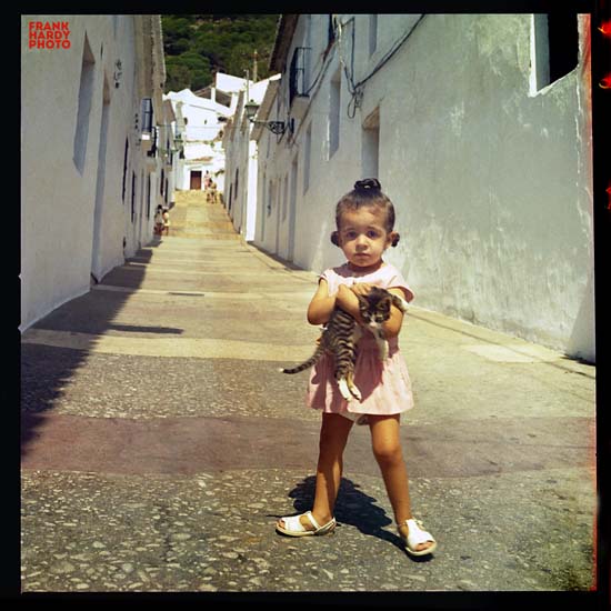 How about the lighting in this place … that is correct, there is none. The food was not bad and the music was interesting, but I did not run out and buy and eight track of the band. The next several are back in Spain. The little girl with the cat was taken in Rodas Spain and the street was some where that I cannot remember … it is just an interesting place / image …