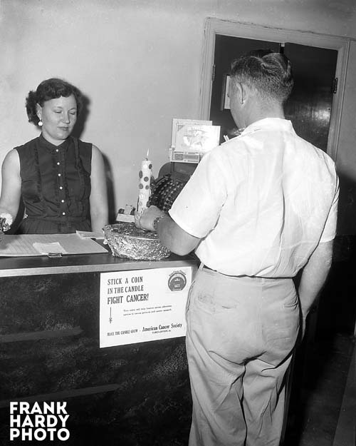 This is only photo in my father’s files that I have of the Coffee Cup and it was made sometime back in the 1950’s. Look closely at the post card rack and you will see his photo of the Hotel San Carlos that I have posted on this blog several times. No clue who the lady is, I am sure that someone will recognize and identify her. The counter looks exactly the same today, some sixty years later. The photo was taken for the Cancer Society … here is one more photo …