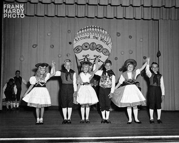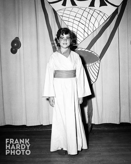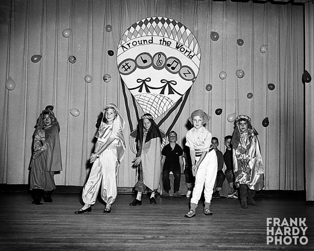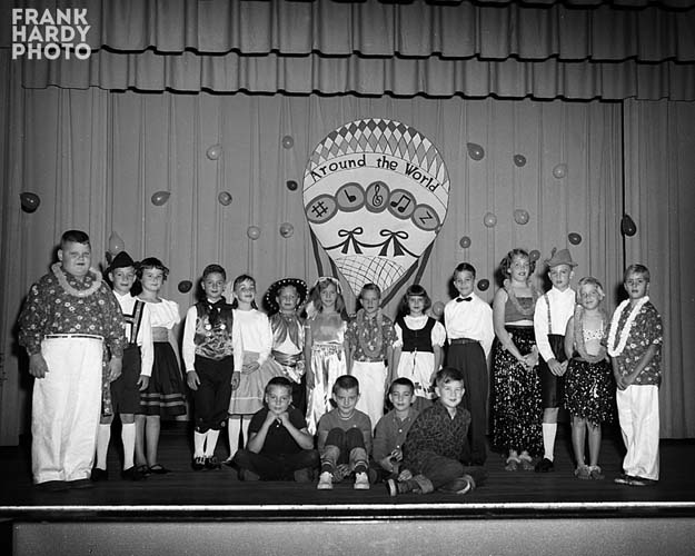 Here are two more photos that I had worked up and had not posted yet from the Suter School play. I do not know if this play was called – Around The World or if that was just the name of the hot air balloon. These carnival plays / pageants must have been popular in the 1950’s, because I have found several negative envelopes from Clubb’s junior high school, also. A good friend of mine mentioned to me that her sister was crowned ” Queen of Clubb’s ” at one of the pageants and I happened to find a photo of her being crowned. Here is one more below …