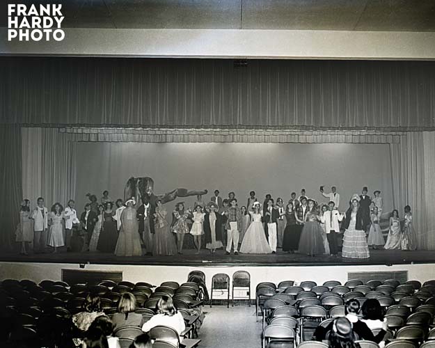 This is the cast from the play ” Finian’s Rainbow ” put on by the chorus of Pensacola High School. I am not sure of the year, but it is either 1969 or 1970. I have a 1970 Pensacola Annona yearbook and I will go back to see if that was the year. I do not have any close-ups of the actors, only group views. I have several other negatives and I will see what other groups are there. I recognize on of the girls in the group and I think that she was a year or two older than me. If anyone remembers this play from PHS, please let us hear from you. Thanks for looking … Frank